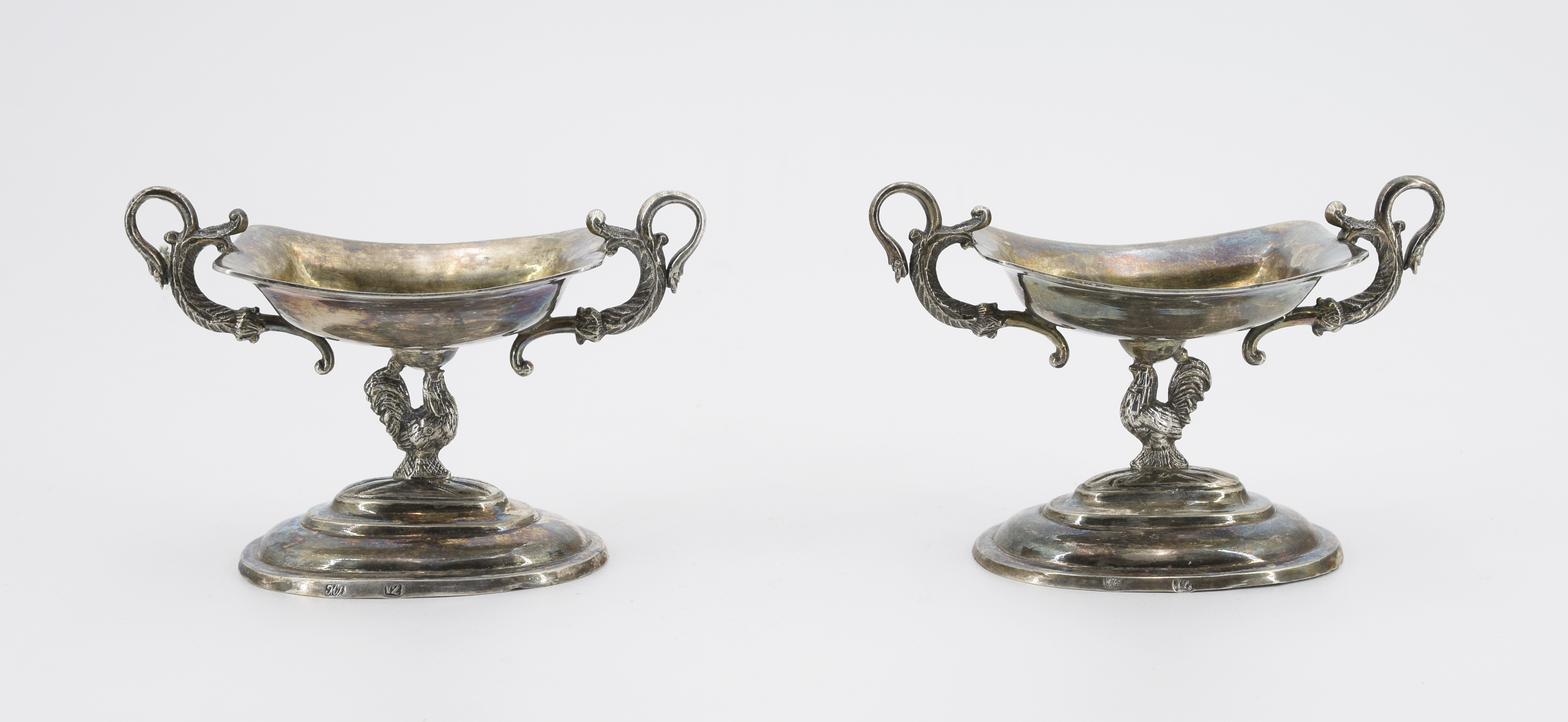 srebro próby 12 częściowo złocone, cechowane; wys. 8 cm, szer. 11,2 cm, głęb. 5,6 cm; waga 208 g.