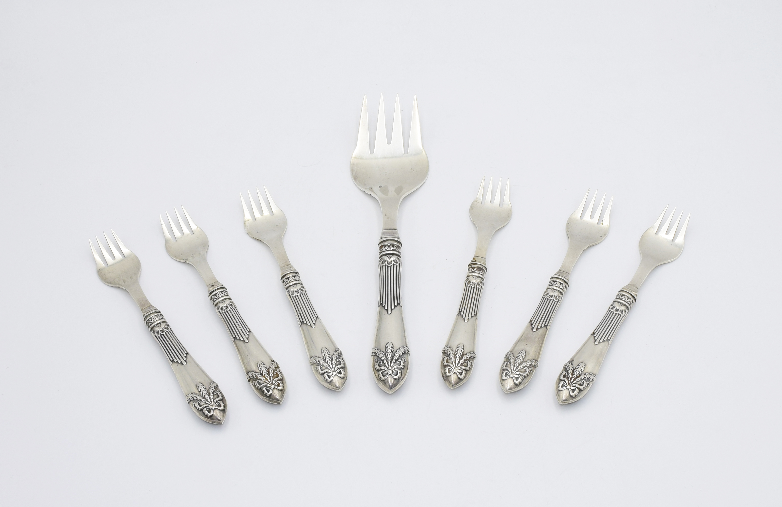 Zestaw: 6 widelców stołowych do ryb i widelec środka stołu