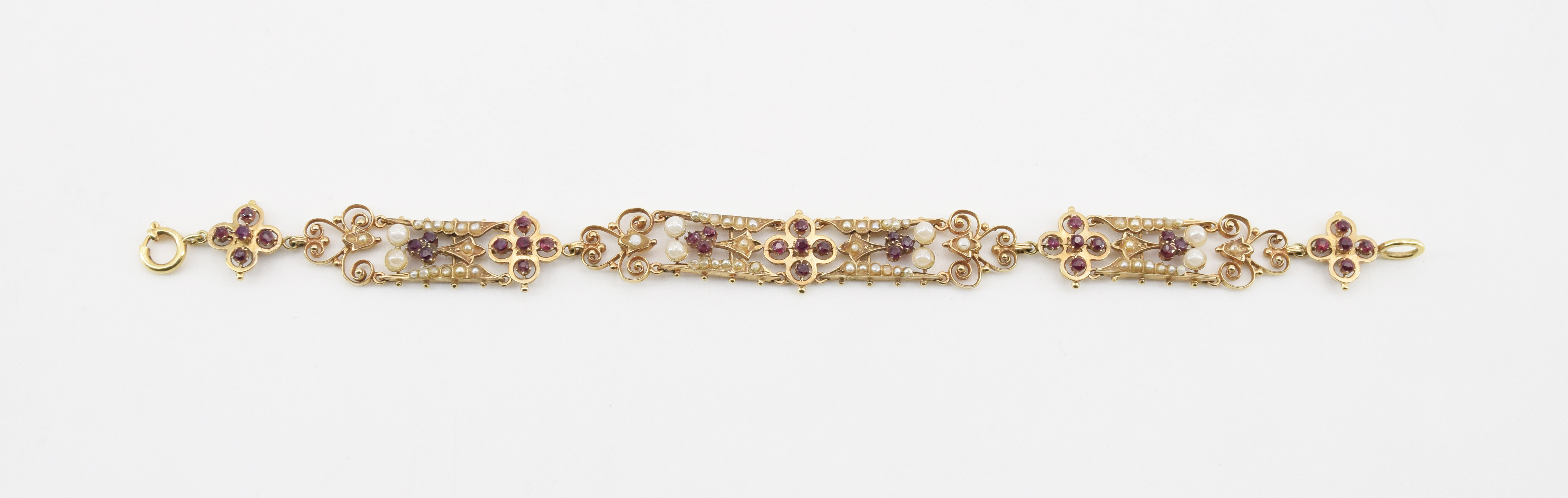 37 szt. okrągłych rubinów oraz 64 szt. pereł o śr.1.10-3.30 mm,