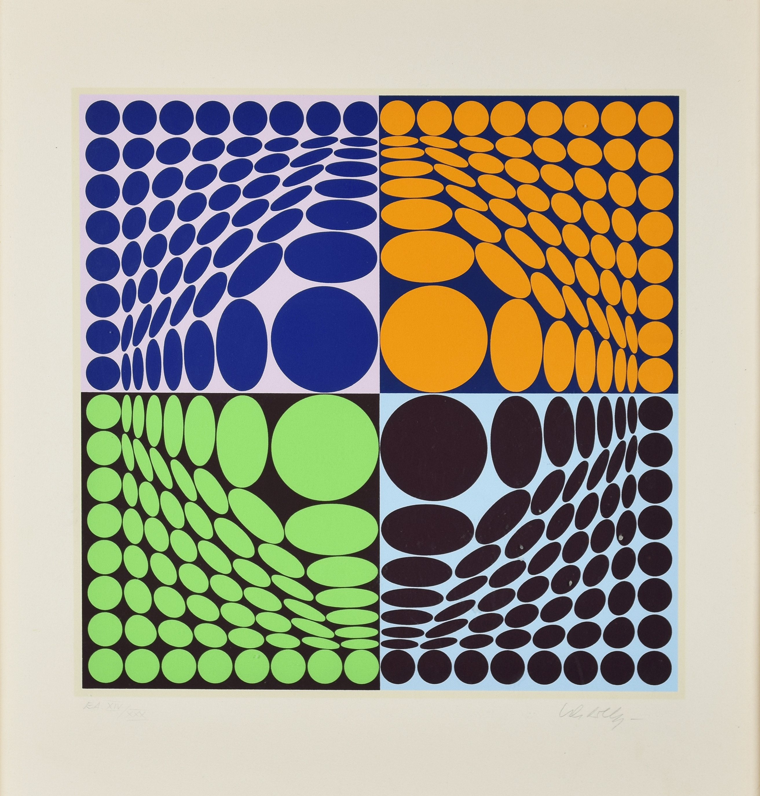 sygn. p. d.: Vasarely (ołówkiem), nakład l. d.: E.A XIV / XXX (ołówkiem).
