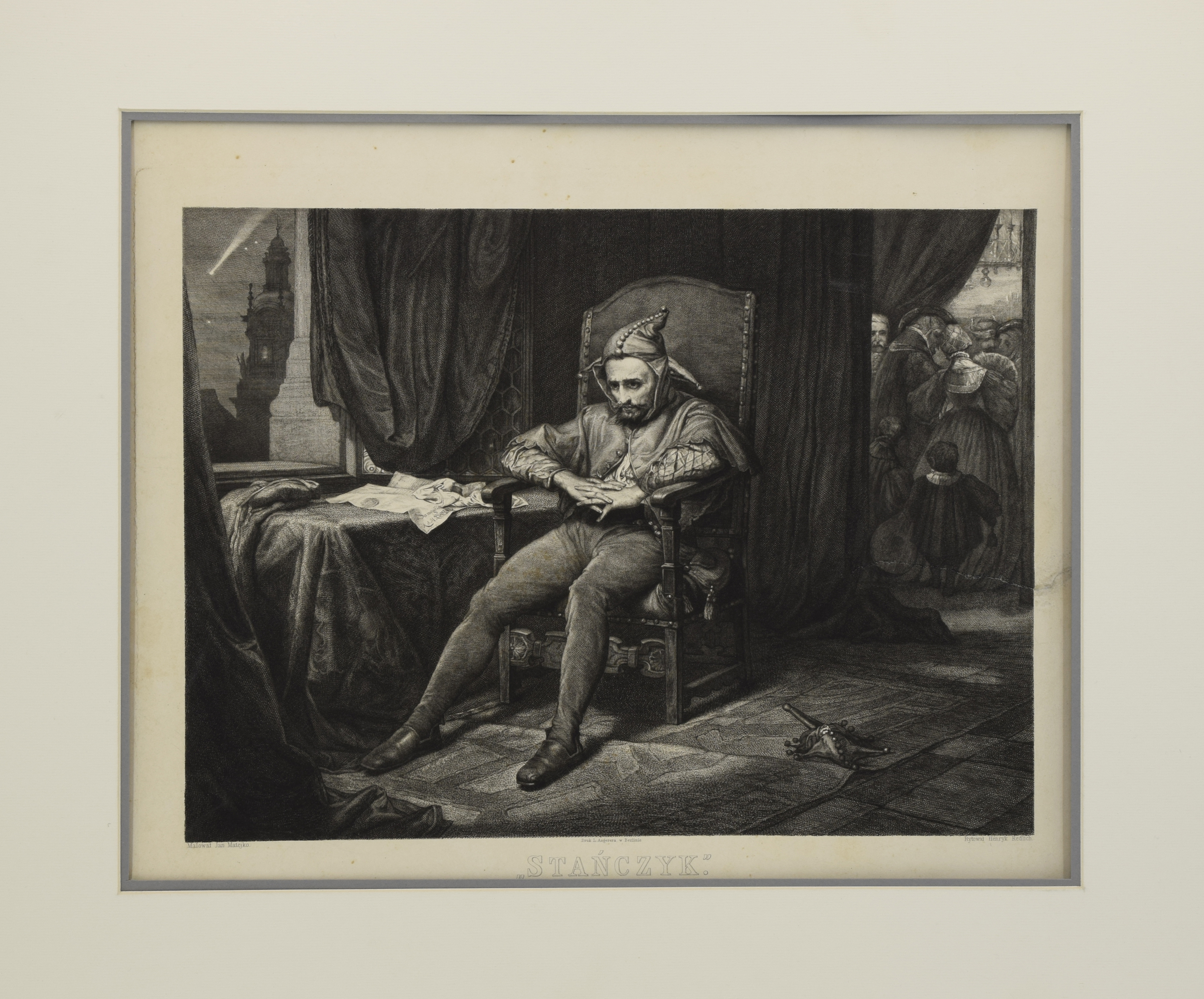 l. d.: Małował Jan Matejko, p. d.: Rytował Henryk Redlich, śr. d.: Druk L. Angerera w Berlinie, niżej: "STAŃCZYK"