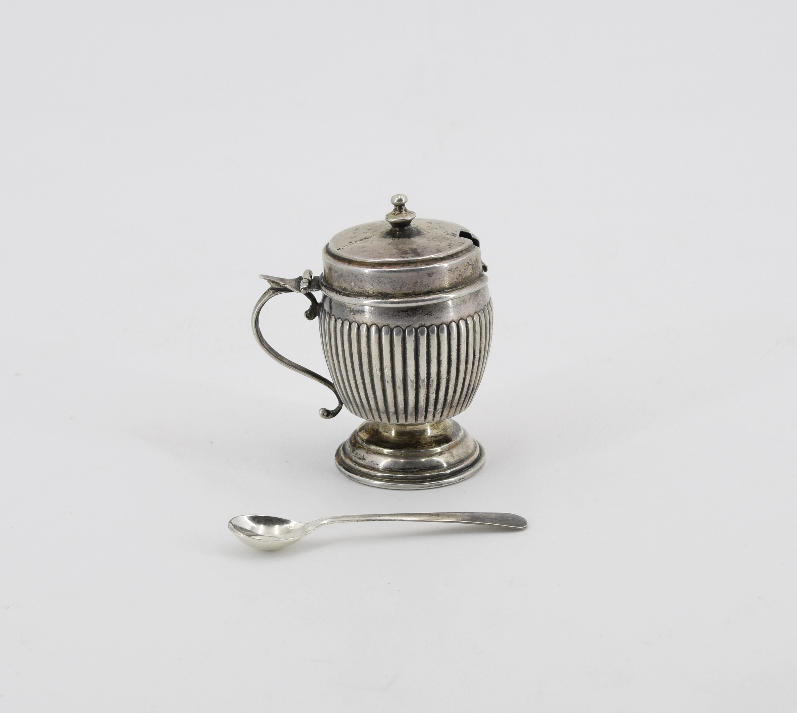 srebro pr. 800, wkład szklany, kobaltowy; 6,5 x 5,7 x 3,7 cm, waga srebra: 51 g;