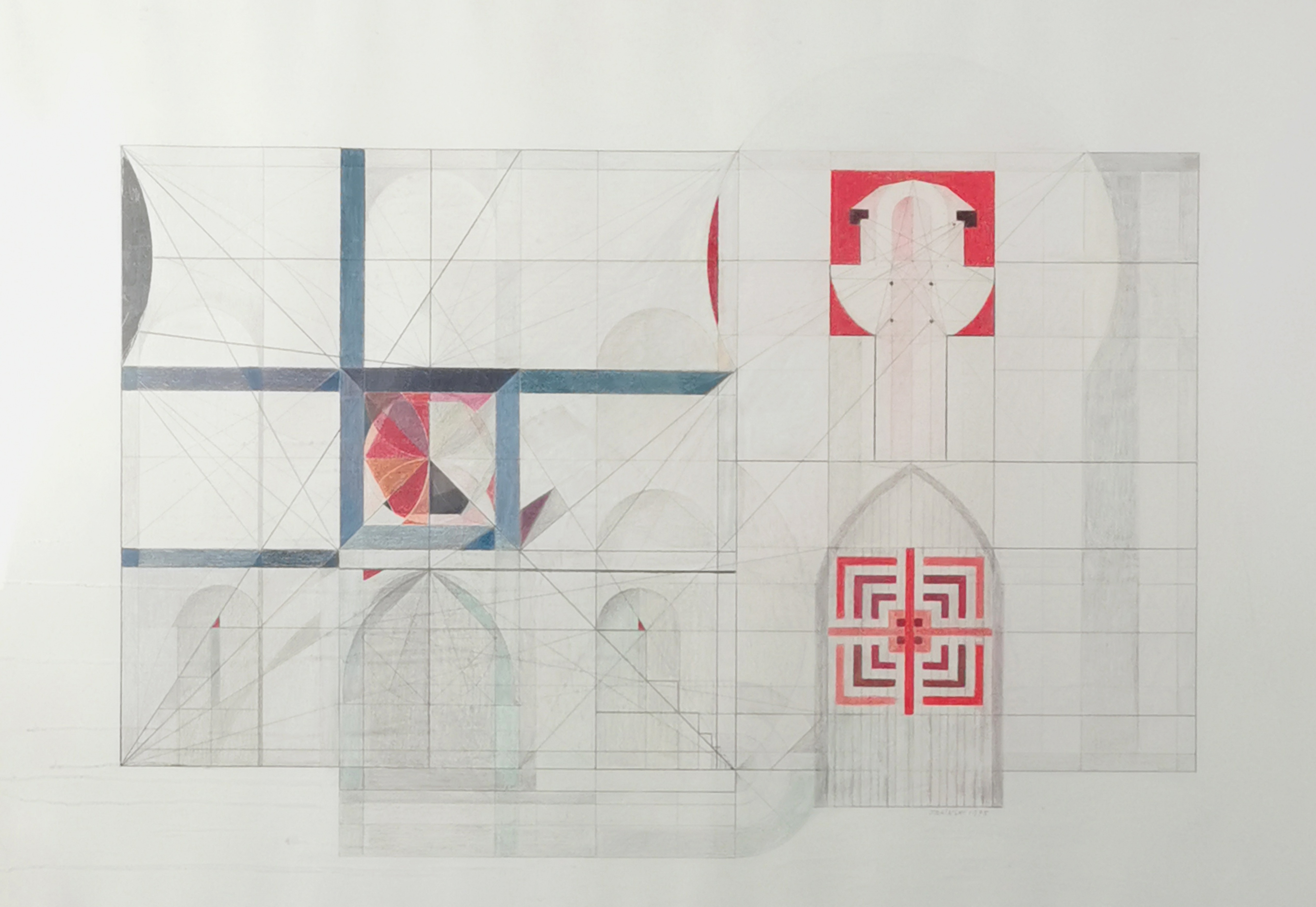 ołówek, kredka, papier; 70,5 x 99 cm (w świetle oprawy);
