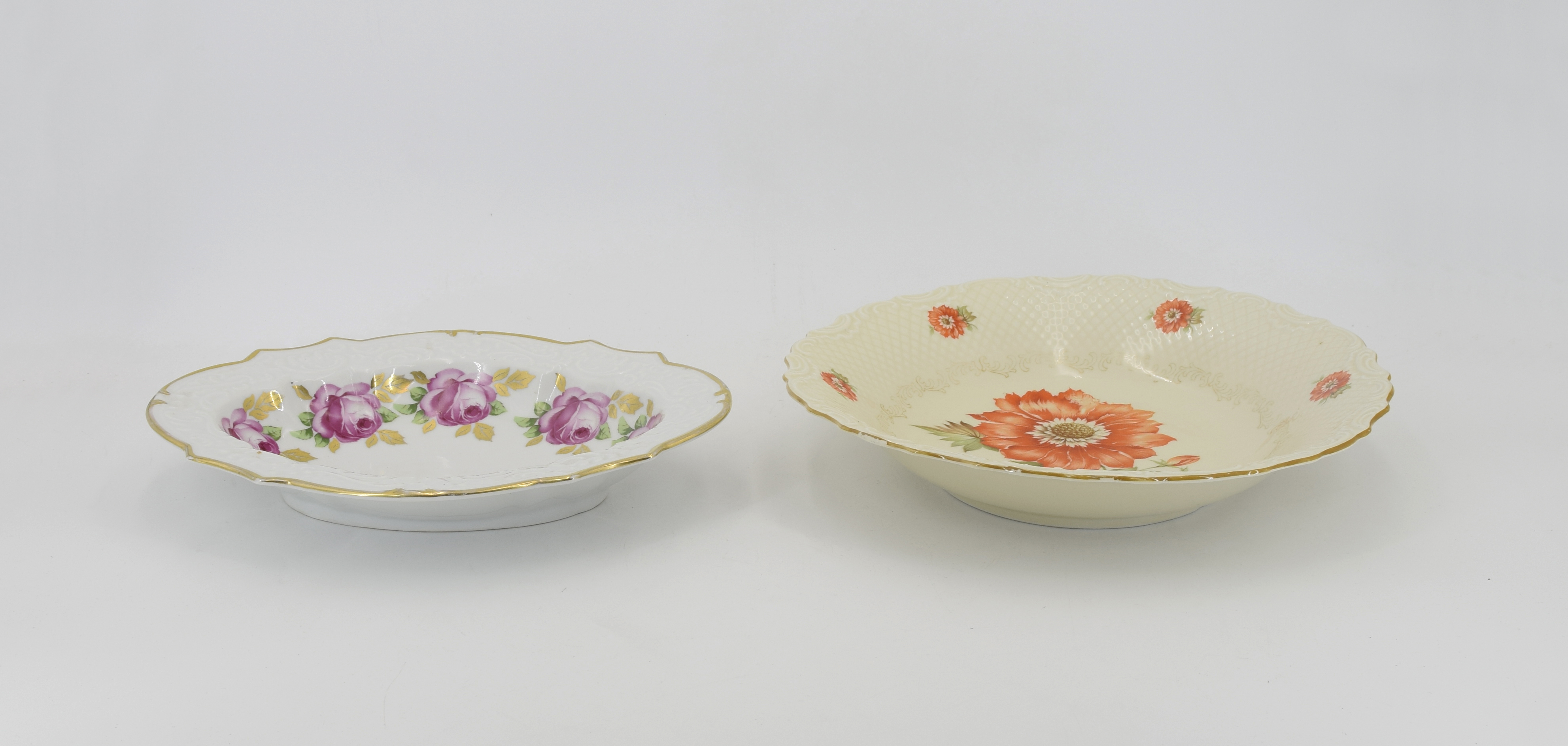 porcelana, druk, złocenia; 5,5 x 28,5 x 28,5 cm, 4,5 x 27 x 22 cm;
