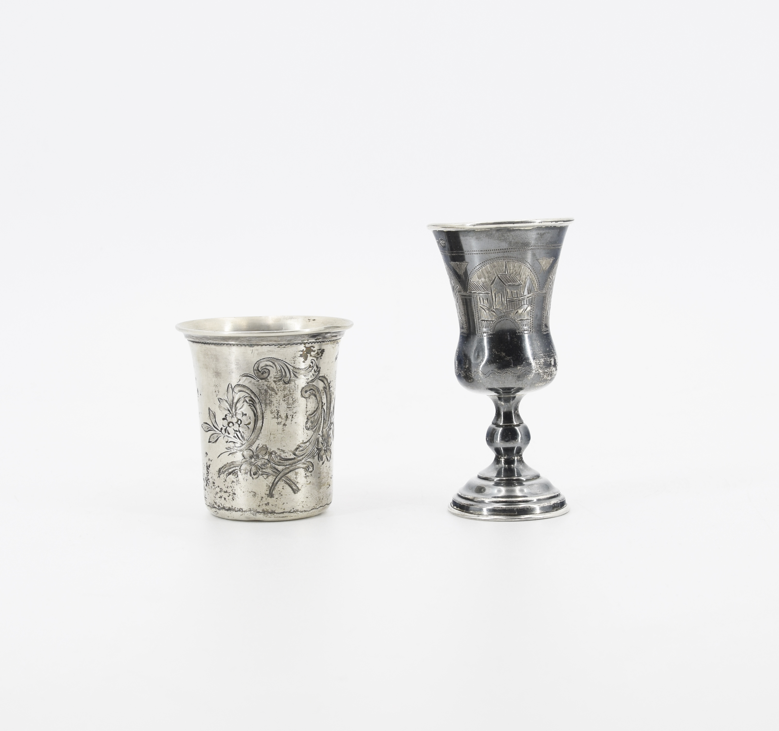 srebro; wys. kubka: 6,5 cm, wys. kieliszka: 9,8 cm; waga łączna: 71 g;