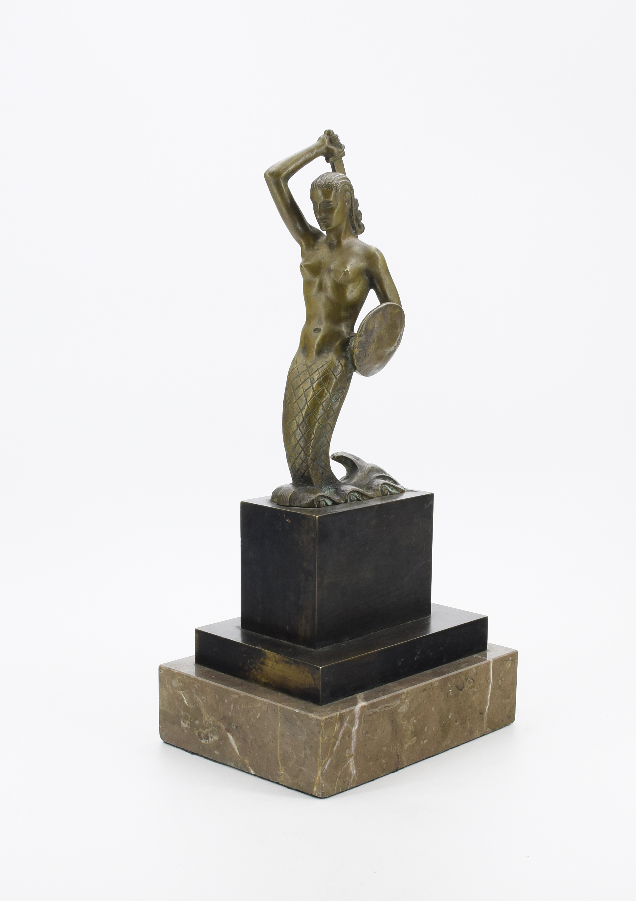 brąz polerowany i patynowany, podstawa - kamień; wysokość całk. 36 cm;