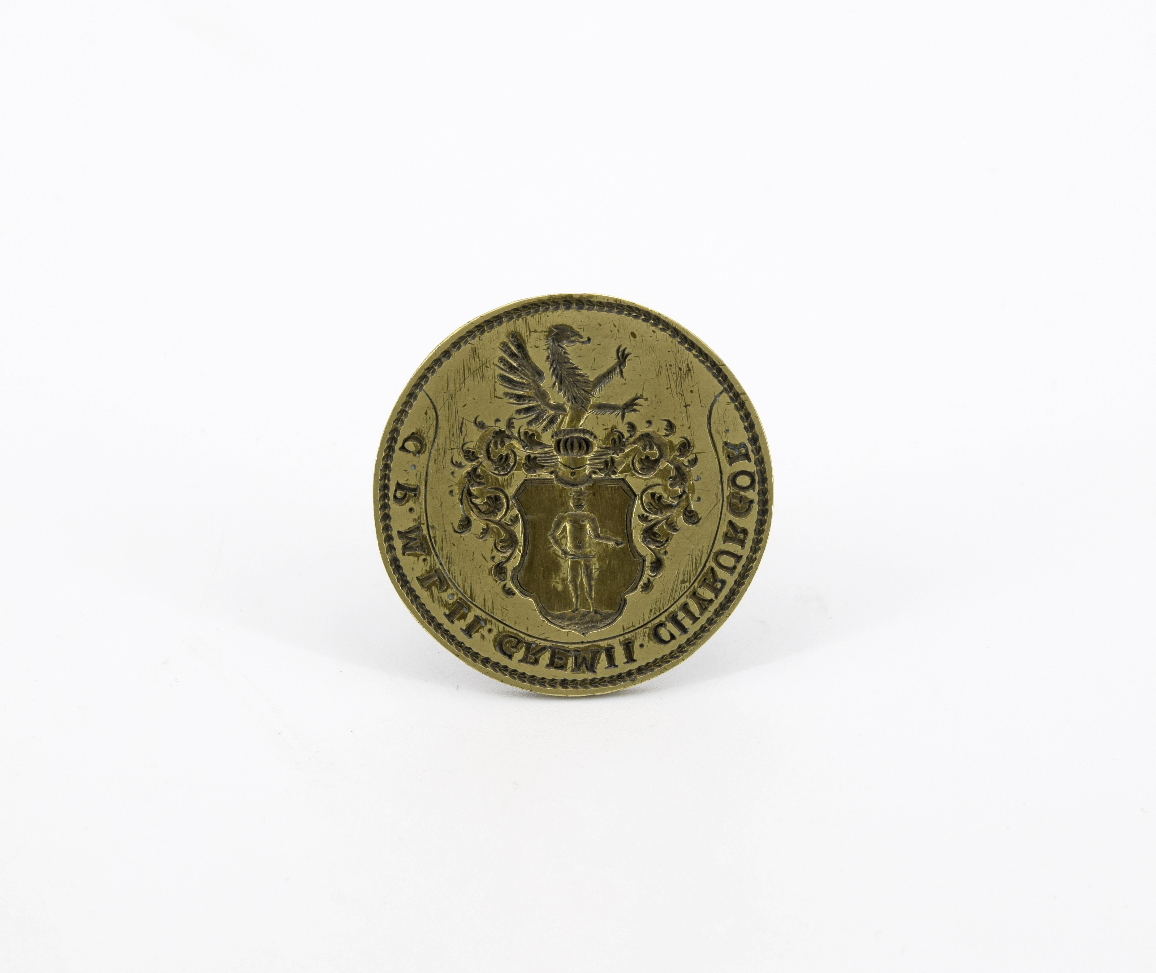 mosiądz; średnica 5 cm; wys. 3 cm;