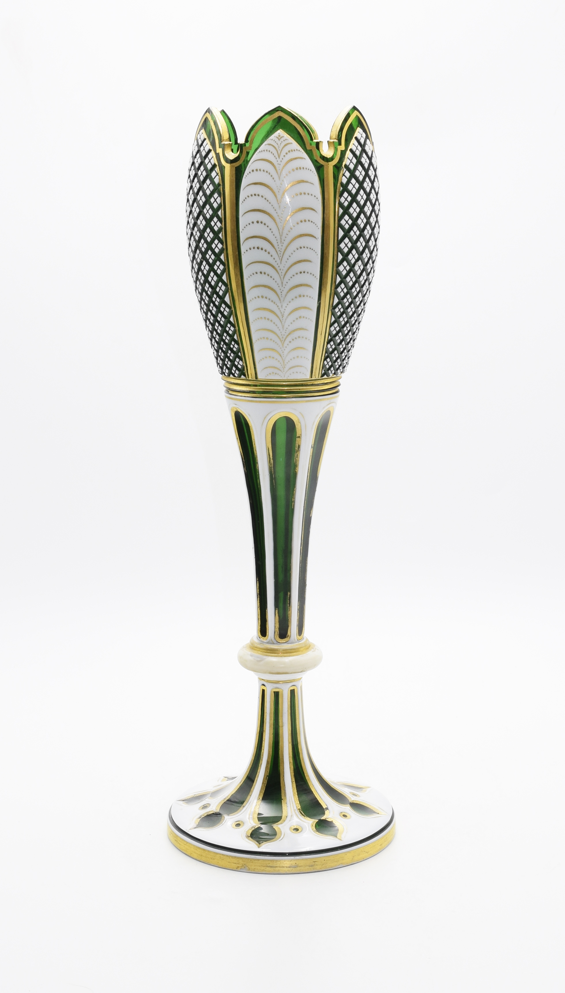 szkło dwuwarstwowe zielone i białe, złocenia; wys. 41 cm;