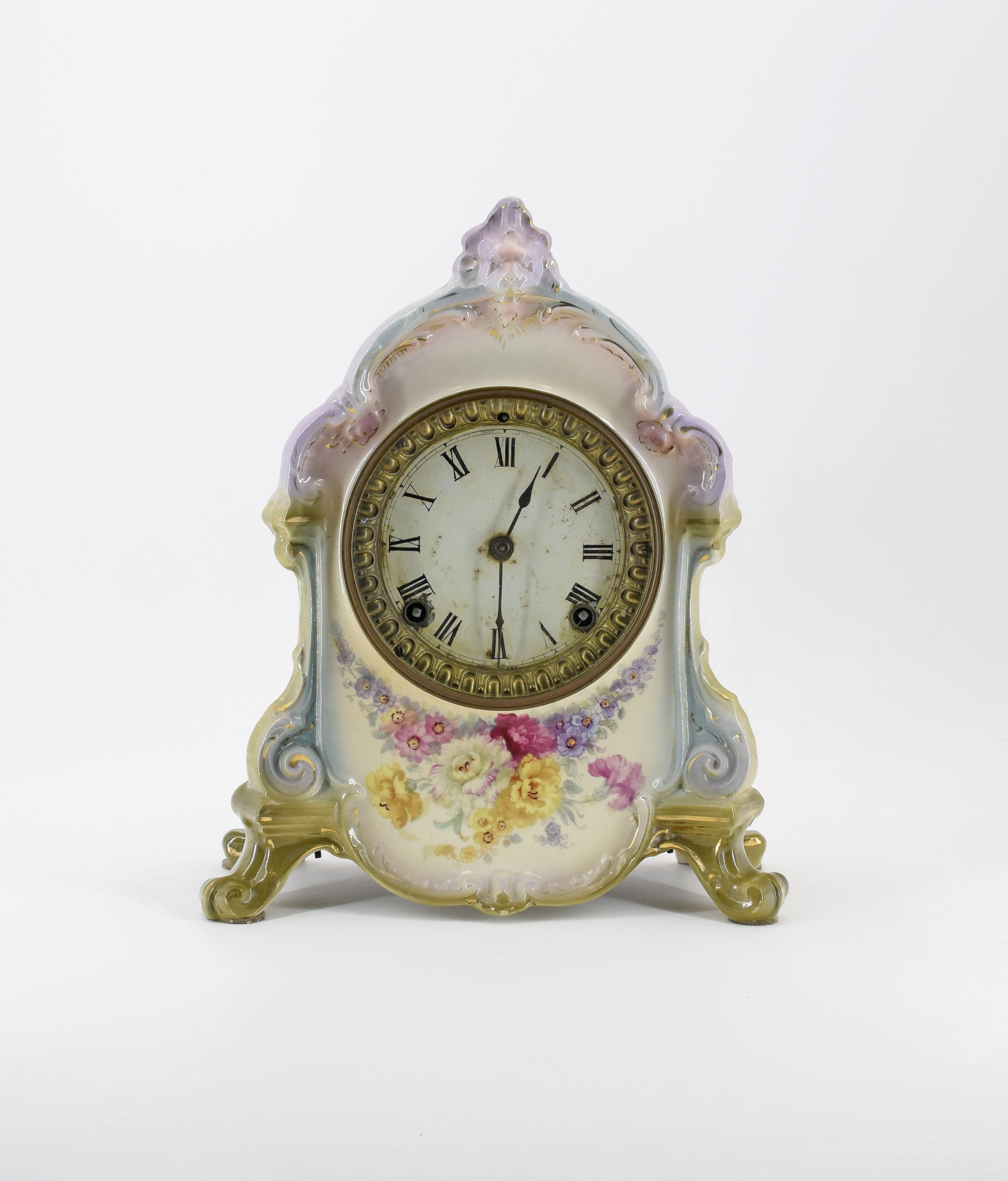 Zegar w ceramicznej oprawie z dekoracją kwiatową