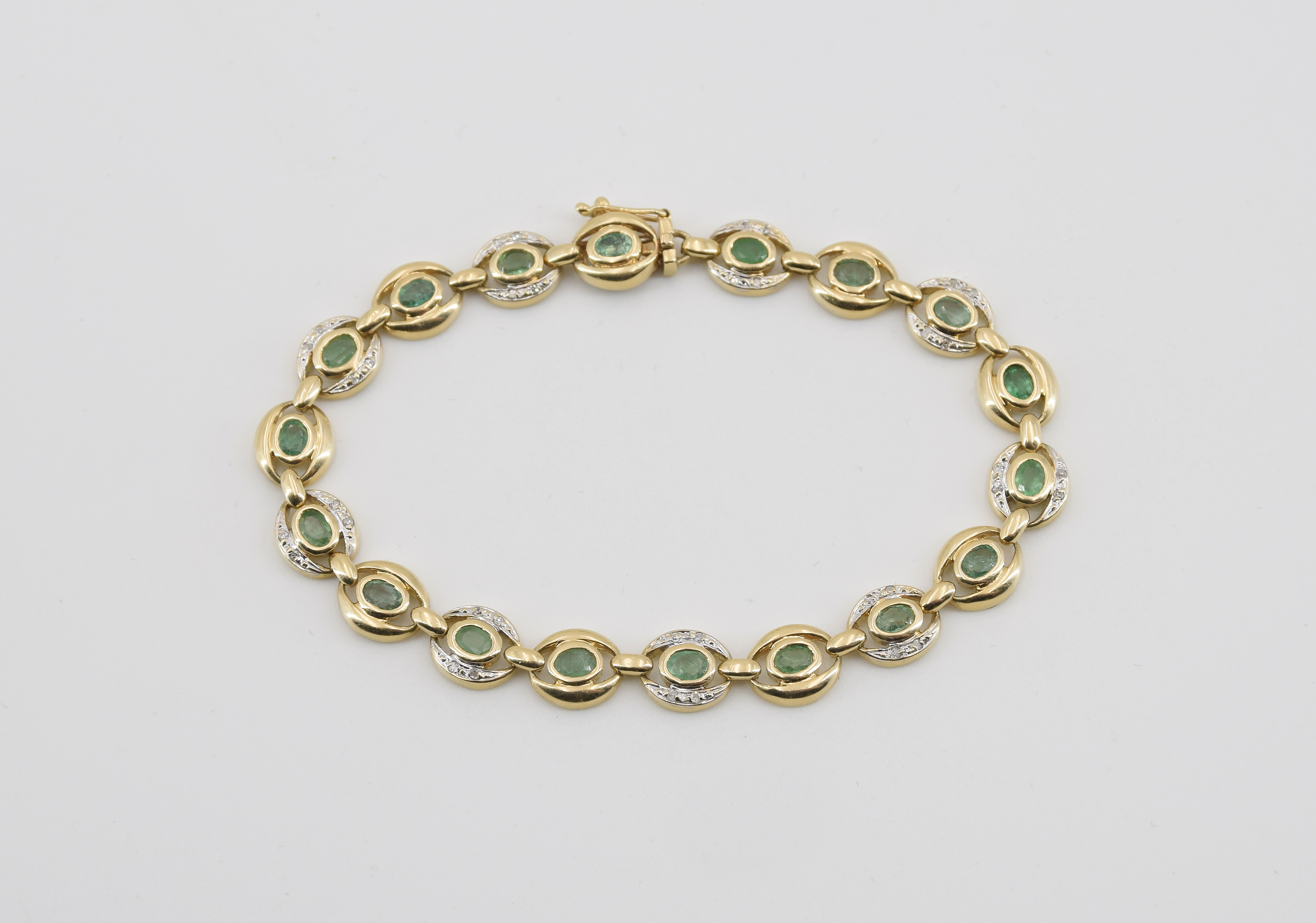 18 szt. owalnych, fasetowanych szmaragdów oraz 36 szt. diamentów w szlifie 8/8;