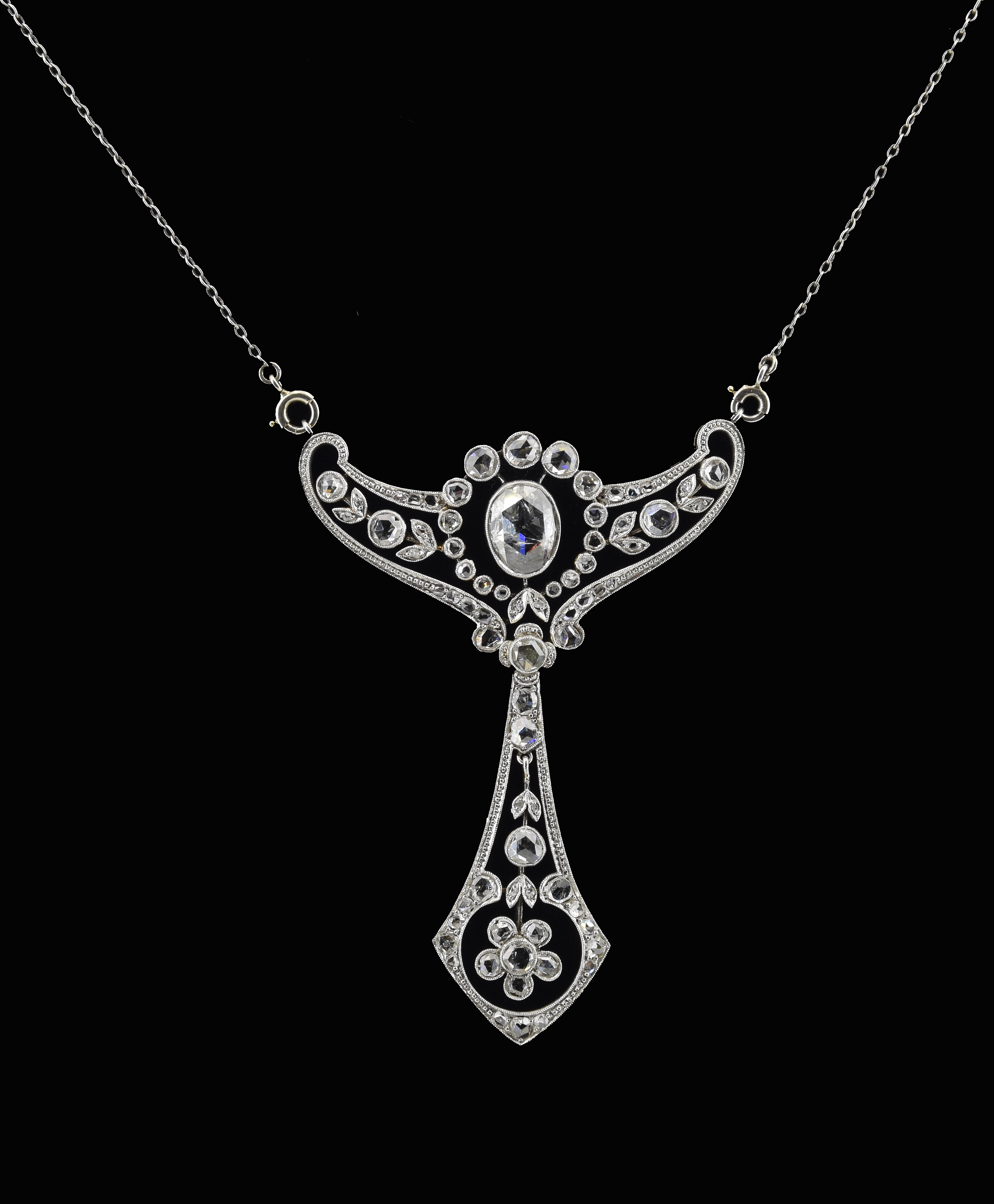 diament w szlifie rozeta antwerpska o masie ok. 0.85 ct oraz 56 szt. rozet i rautów diamentowych;