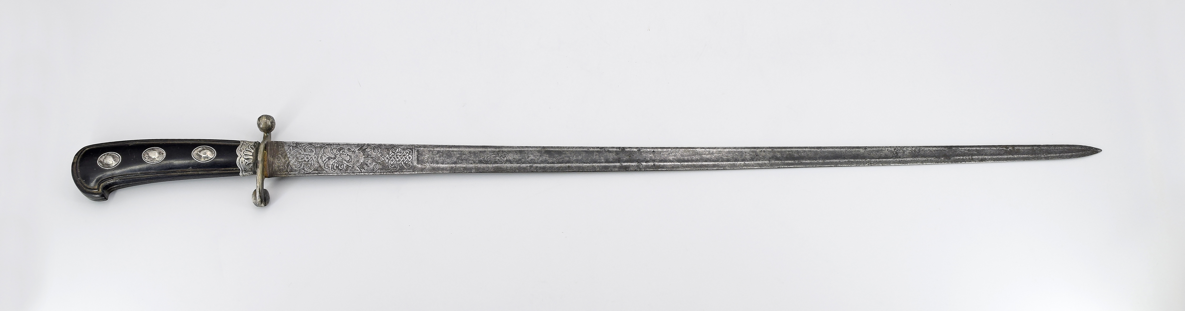 drewno czernione, stal; dł. całk. 71 cm;