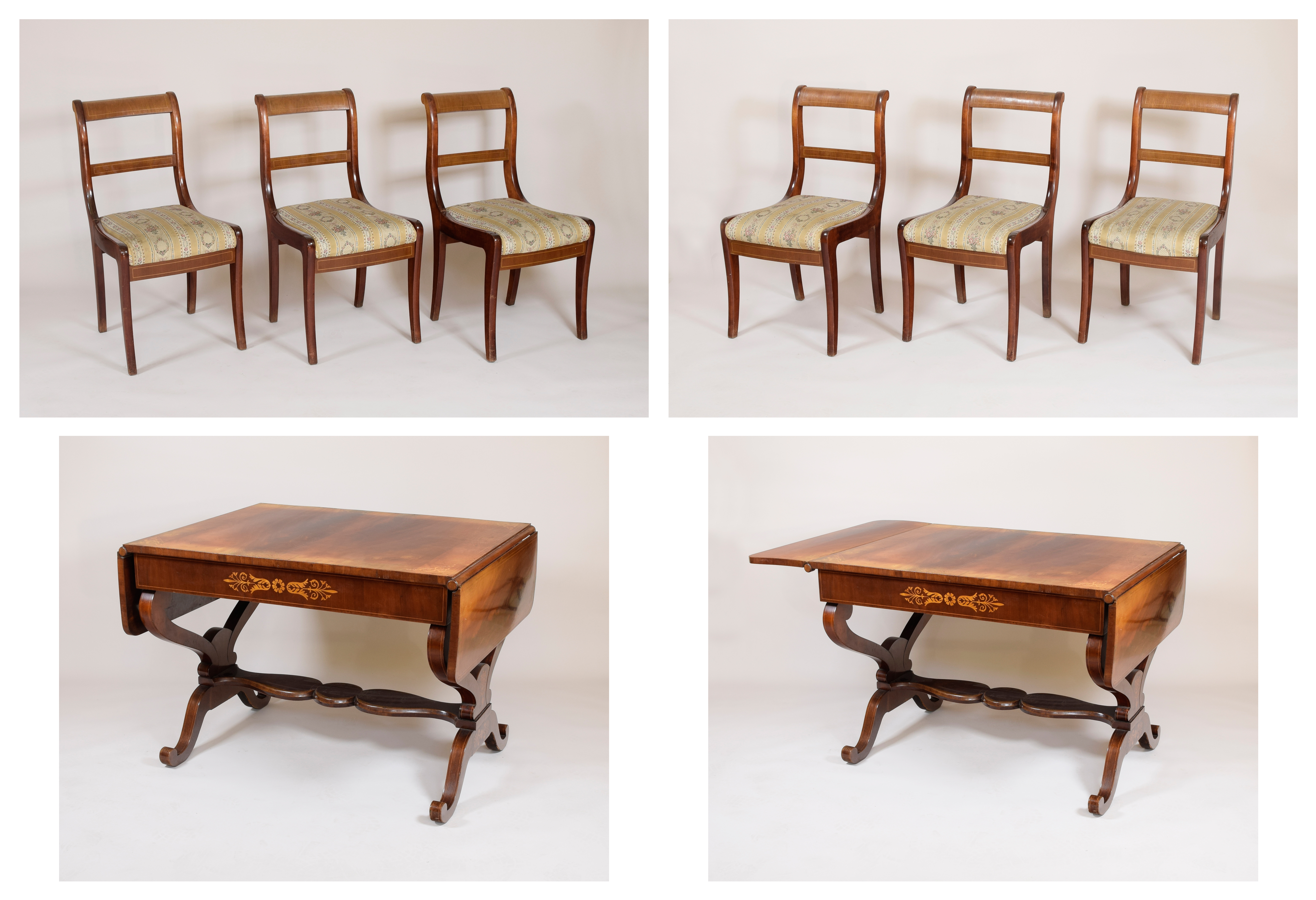 Stół w stylu biedermeier z 6 dobieranymi krzesłami