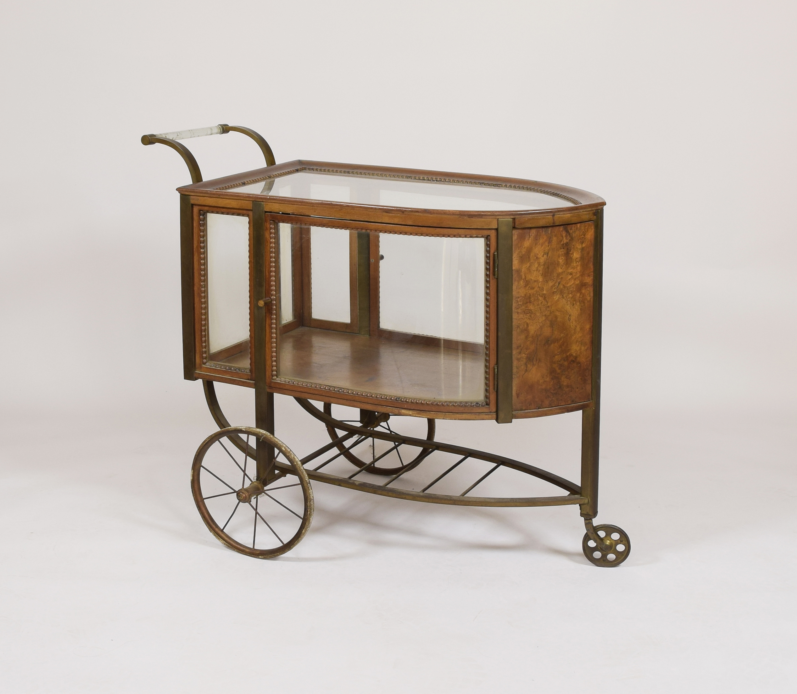 konstrukcja i fornir - orzech; mosiądz, szkło; wys. 78 cm, szer. 86 cm, głęb. 44 cm.