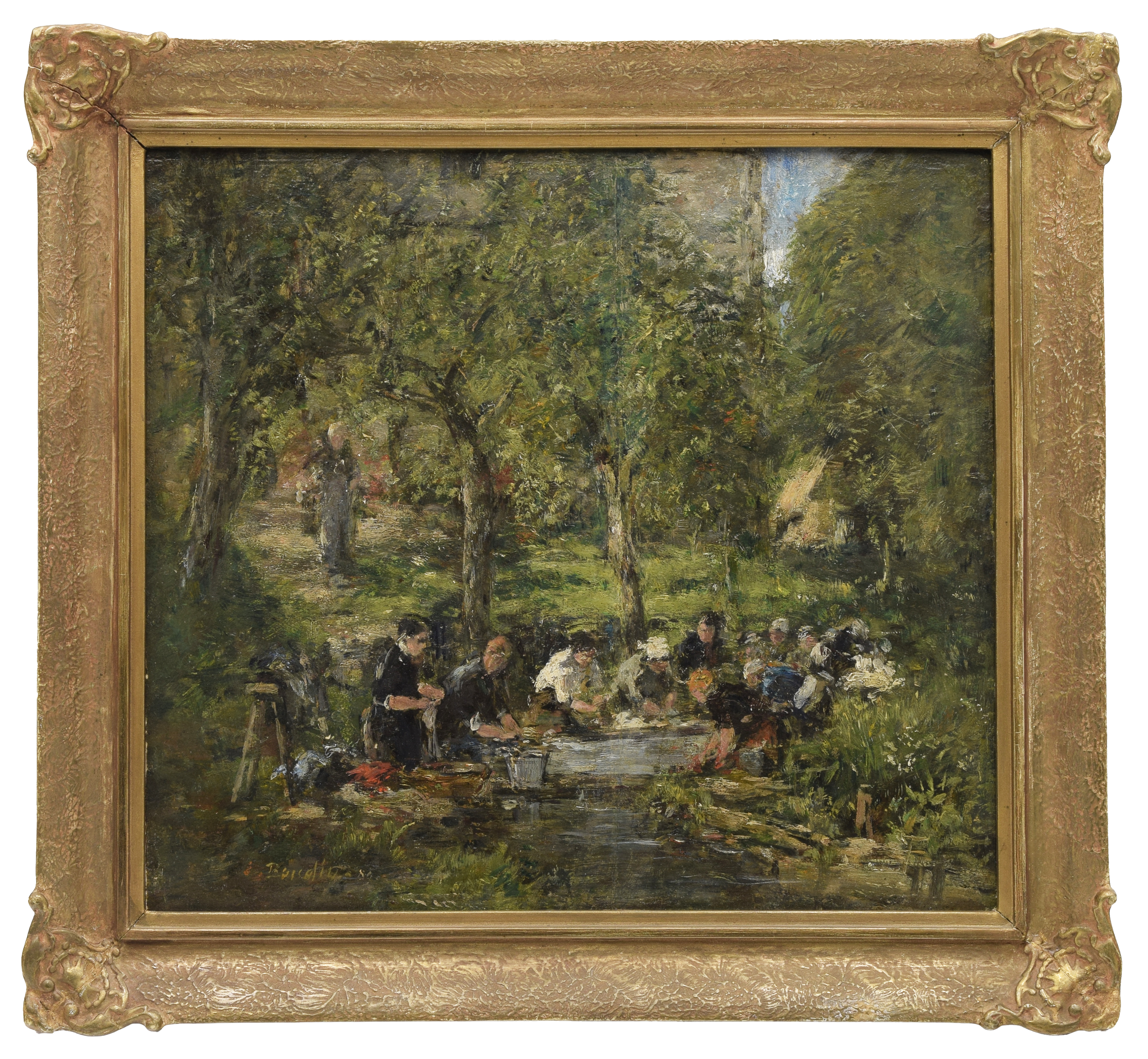olej, deska; 28 x 31 cm; sygn. i dat. l. d.: E. Boudin. 89. Stan zachowania: deska pęknięta pionowo, wzmocniona parkietem krzyżowym; niewielkie ubytki przetarcia malatury.
