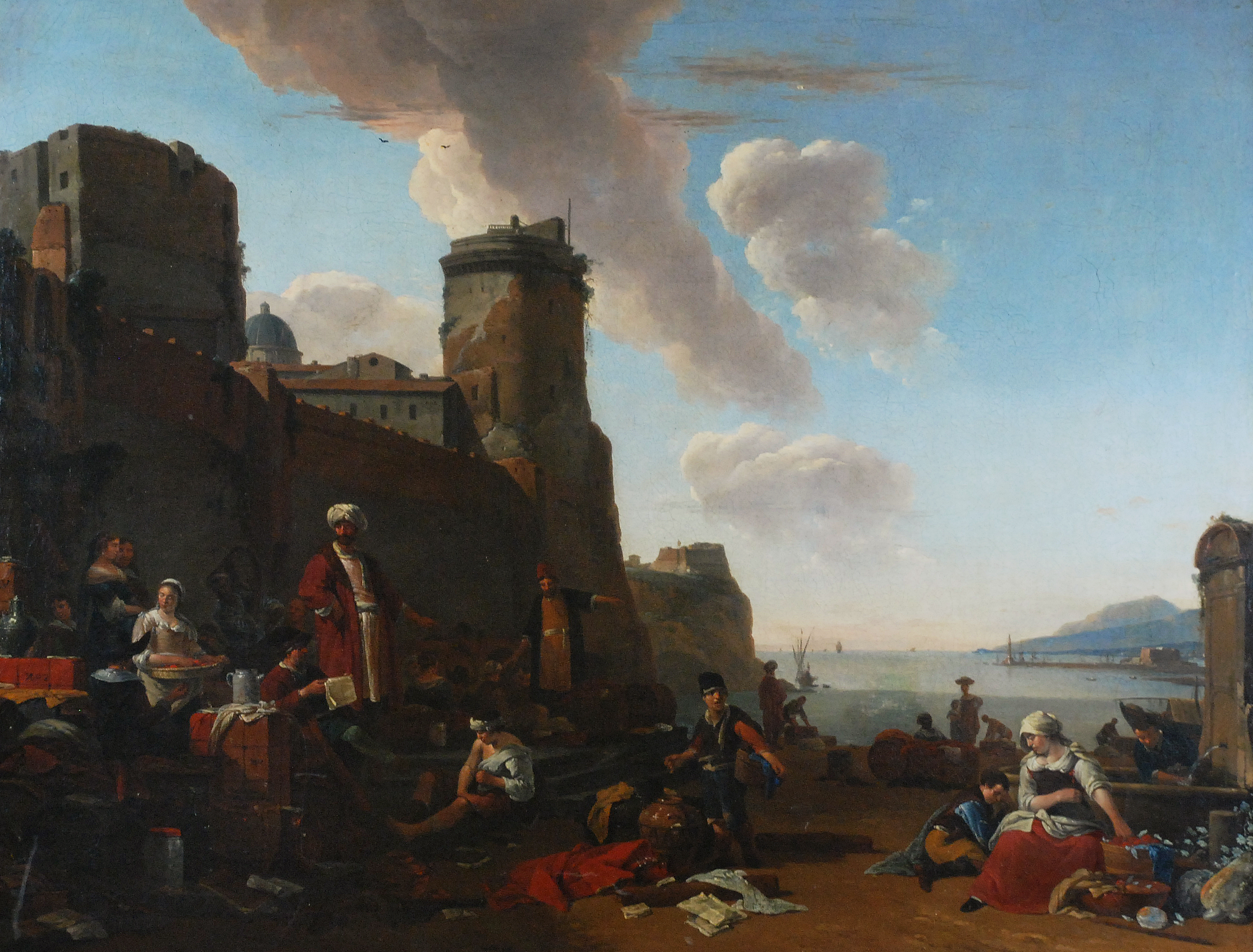 Wizja portu ze scena figuralną, powtarzana w tylu wersjach o podobnej konstrukcji (diagonala, prześwit zatoki z półwyspem), jest ożywiona tymi samymi wciąż, ulubionymi przez artystę postaciami. Ta autokompilacyjność osadza mocno nasze malowidło w dorobku Wijcka, w grupie obrazów związanych z pobytem w Italii i opartych na powstałych tam szkicach (rysunki zatoki neapolitańskiej i włoskich krajobrazów zachowane w wiedeńskiej Albertinie oraz Teylers Stichting w Harlemie). Temat ten, mający zapewne duże wzięcie na rynku sztuki, uprawiał artysta już w rodzimej Holandii, od połowy lat czterdziestych w. XVII do końca życia. W obrębie tego gatunku nasz obraz lokuje się wśród ciekawszych i bardziej dopracowanych realizacji mistrza.