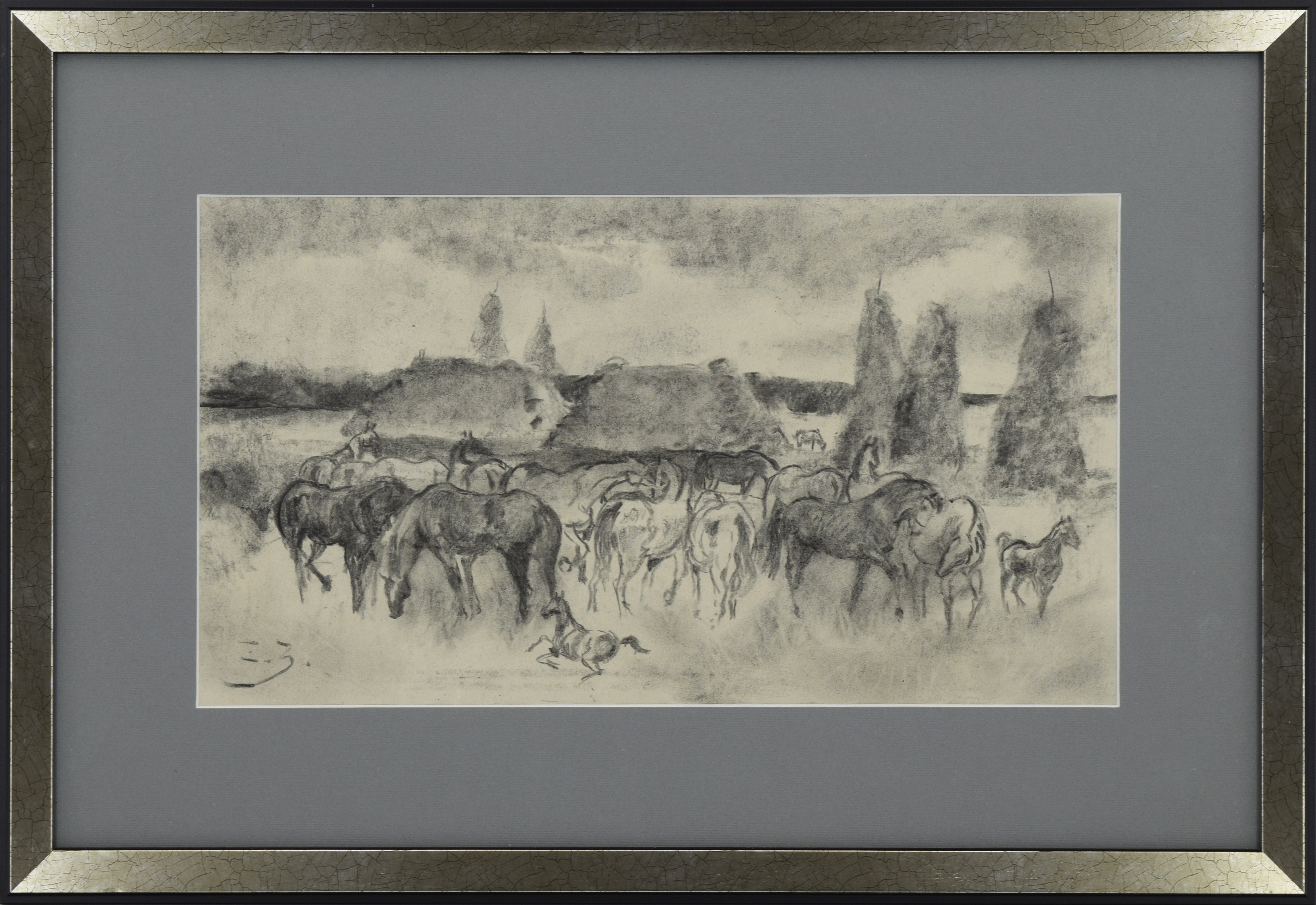 węgiel, papier; 20,5 x 36,5 cm (w świetle oprawy);