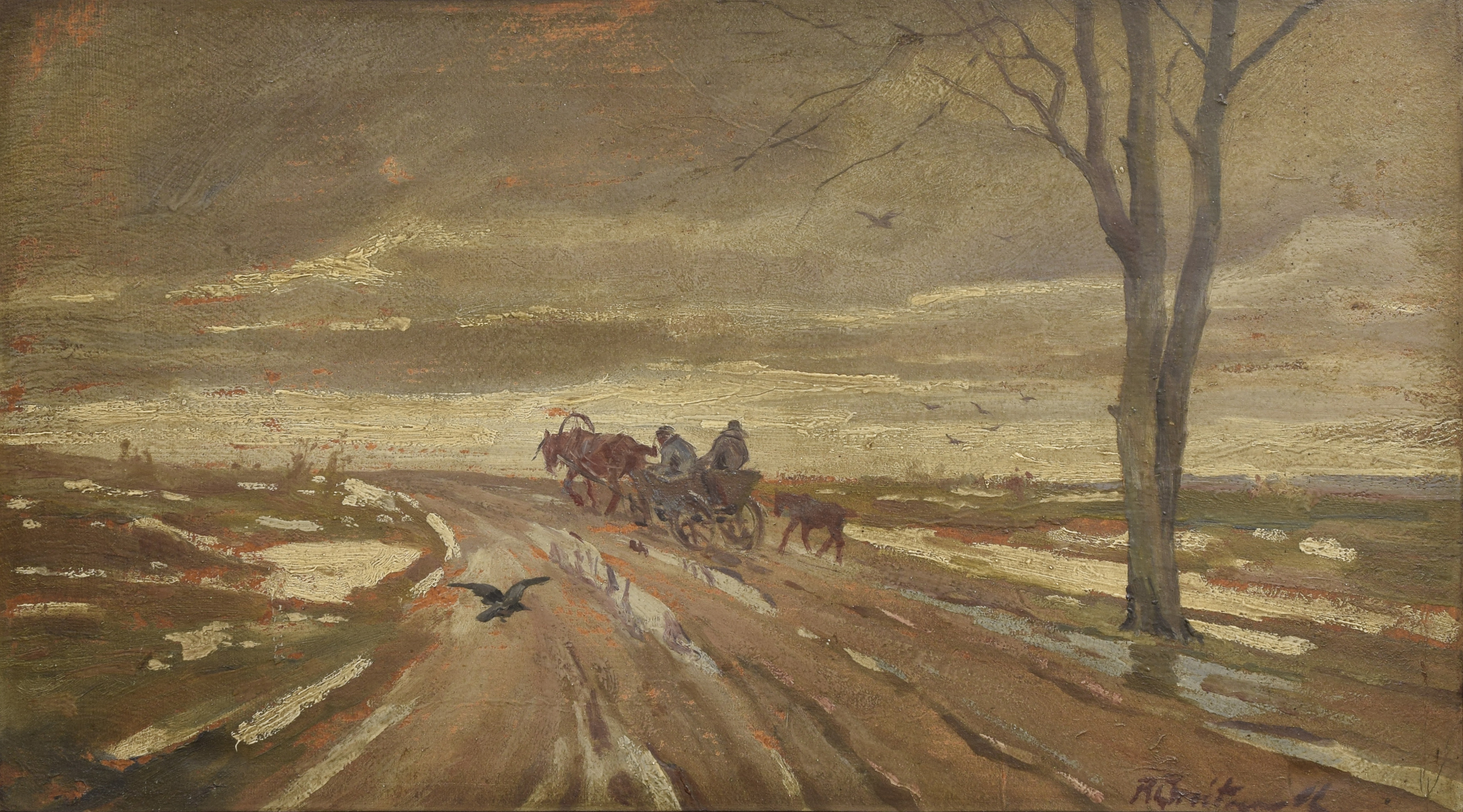 olej, tektura; 40 x 70 cm;