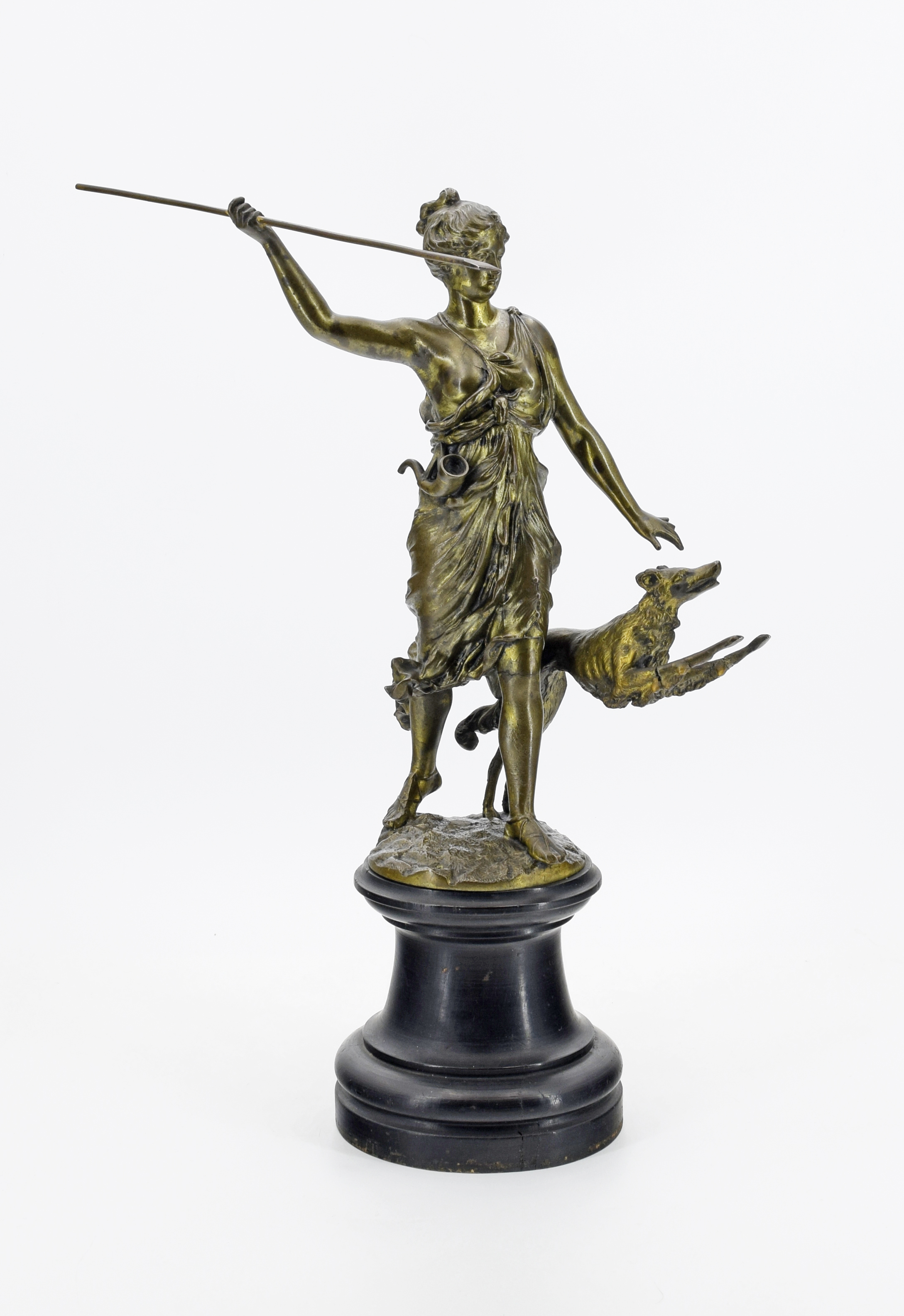 brąz patynowany, drewno lakierowane; wys. 40 cm;