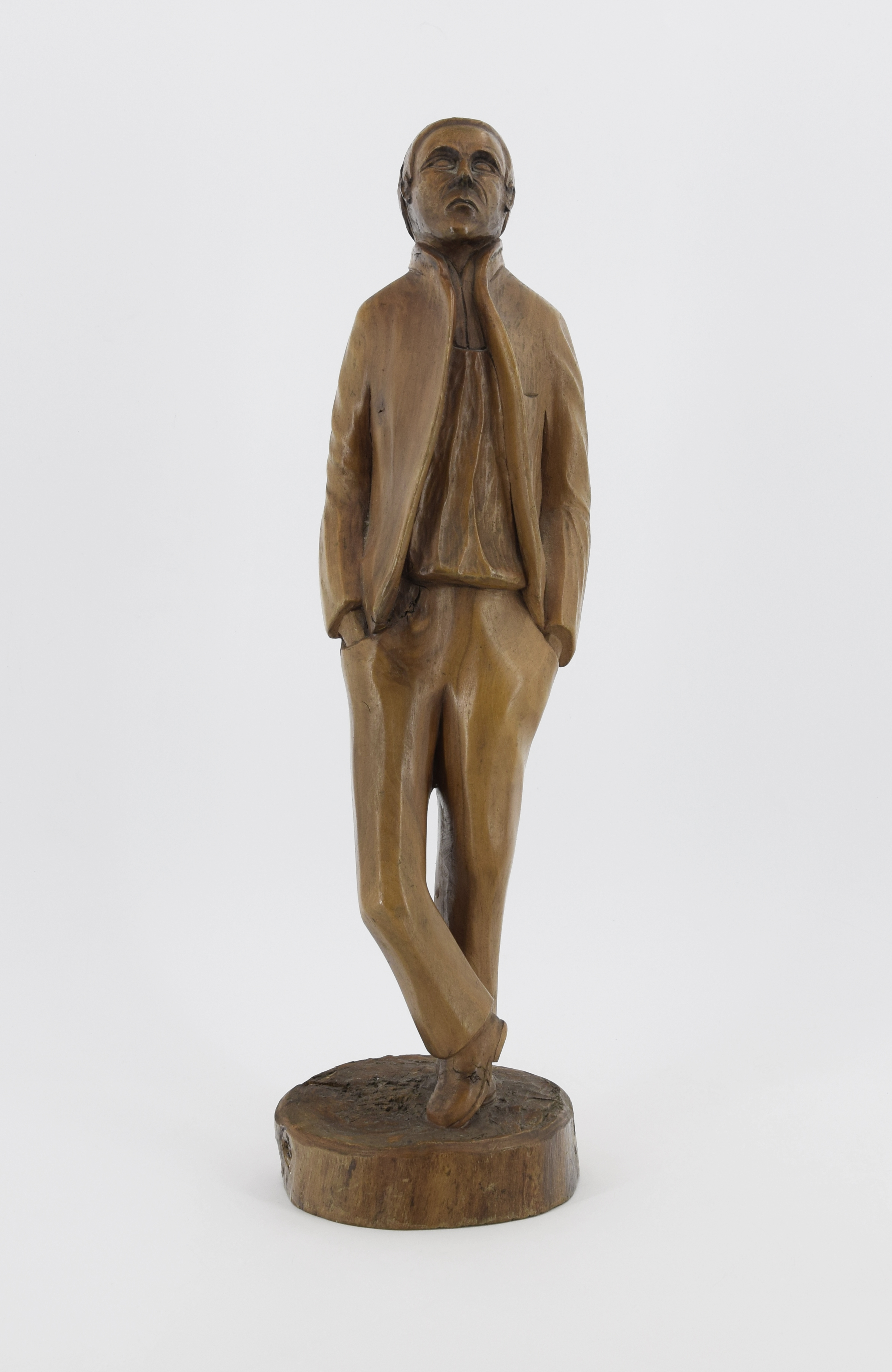 drewno; wys. 43 cm; sygn. z boku u dołu: WM