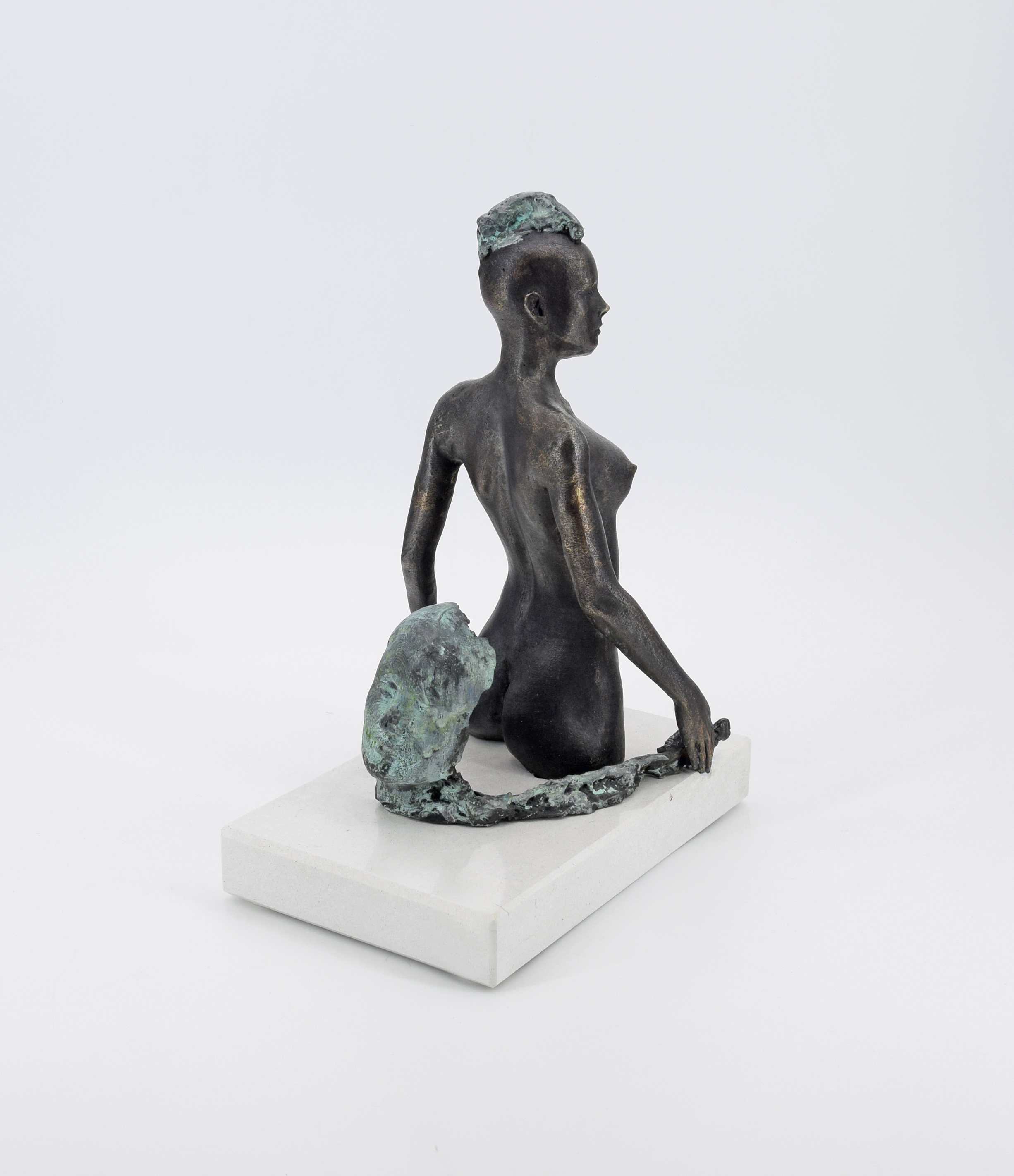 brąz patynowany, kamień; wys. całkowita 27 cm;