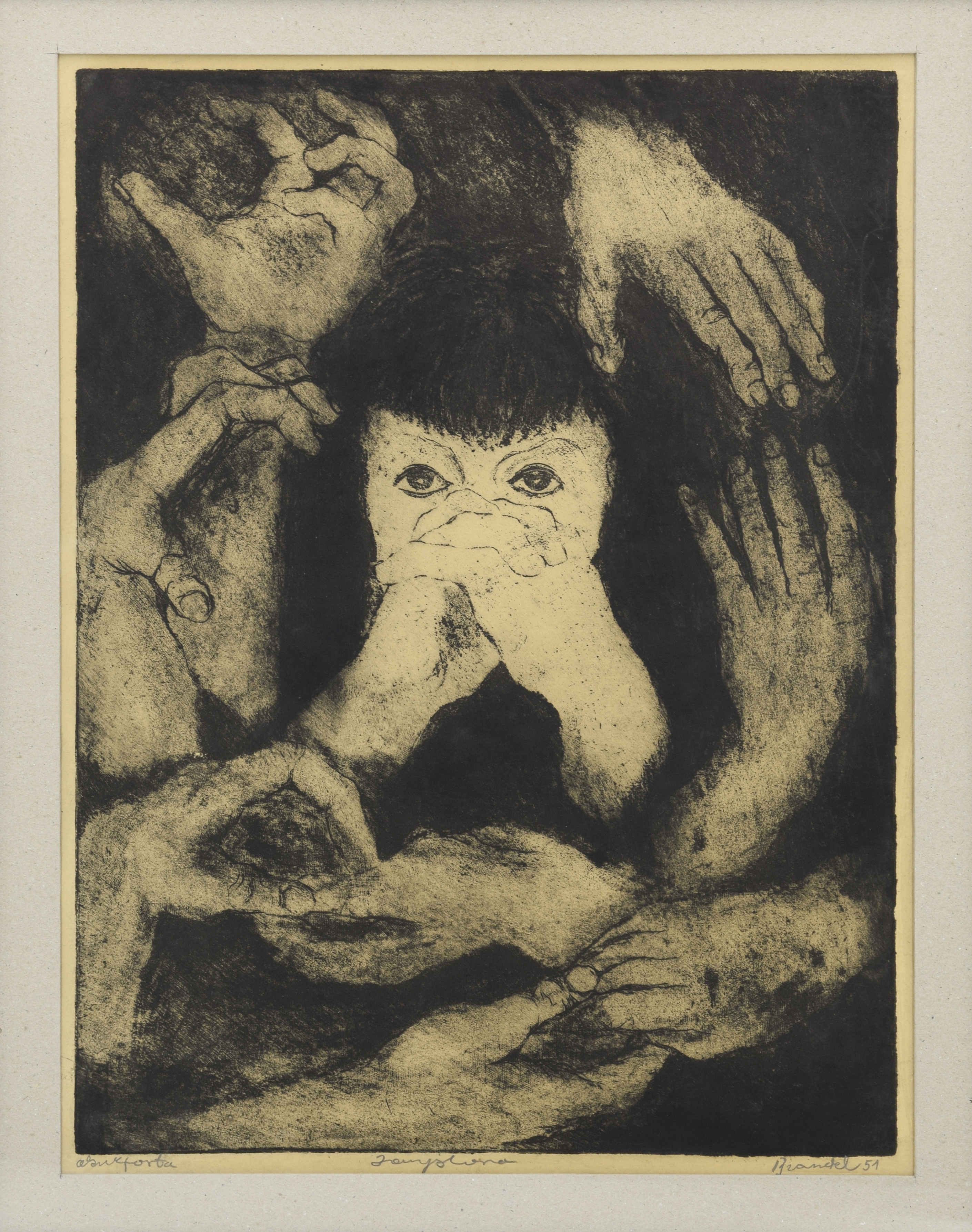 sygn. i dat. p. d.: Brandel 51 (ołówkiem), opisany śr. d.: zamyślona (ołówkiem) i l. d.: akwaforta (ołówkie